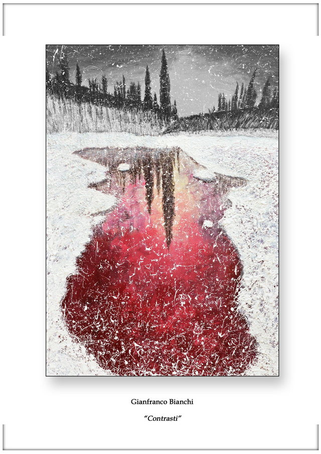 Stampa su cartoncino pregiato formato A4 (cm 21 x 29,7) dell'opera "Contrasti" di Gianfranco Bianchi, firmata dall’artista.