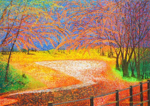Tovaglietta americana in carta plastificata rigida formato A3 (cm 29,7 x 42) su cui è stampata l'opera di Gianfranco Bianchi "Autunno".