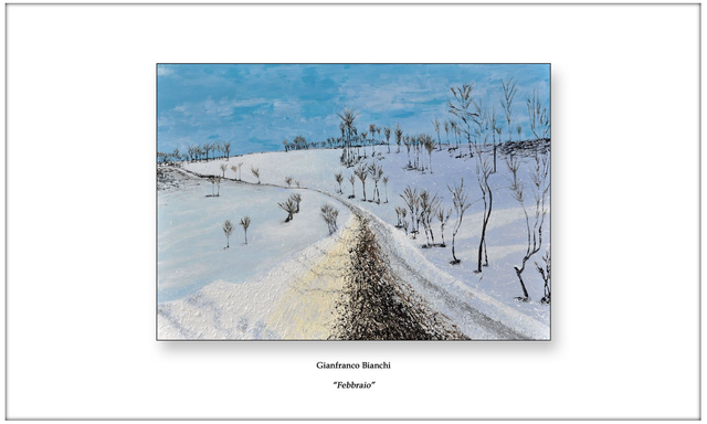 Stampa su cartoncino pregiato formato A4 (cm 21 x 29,7) dell'opera "Febbraio" di Gianfranco Bianchi, firmata dall’artista.